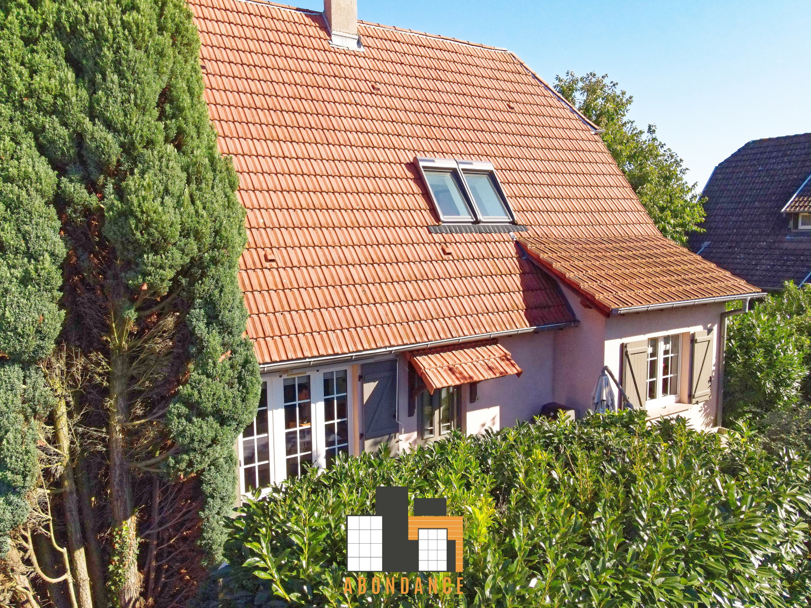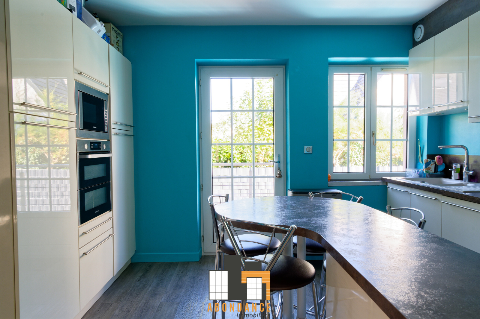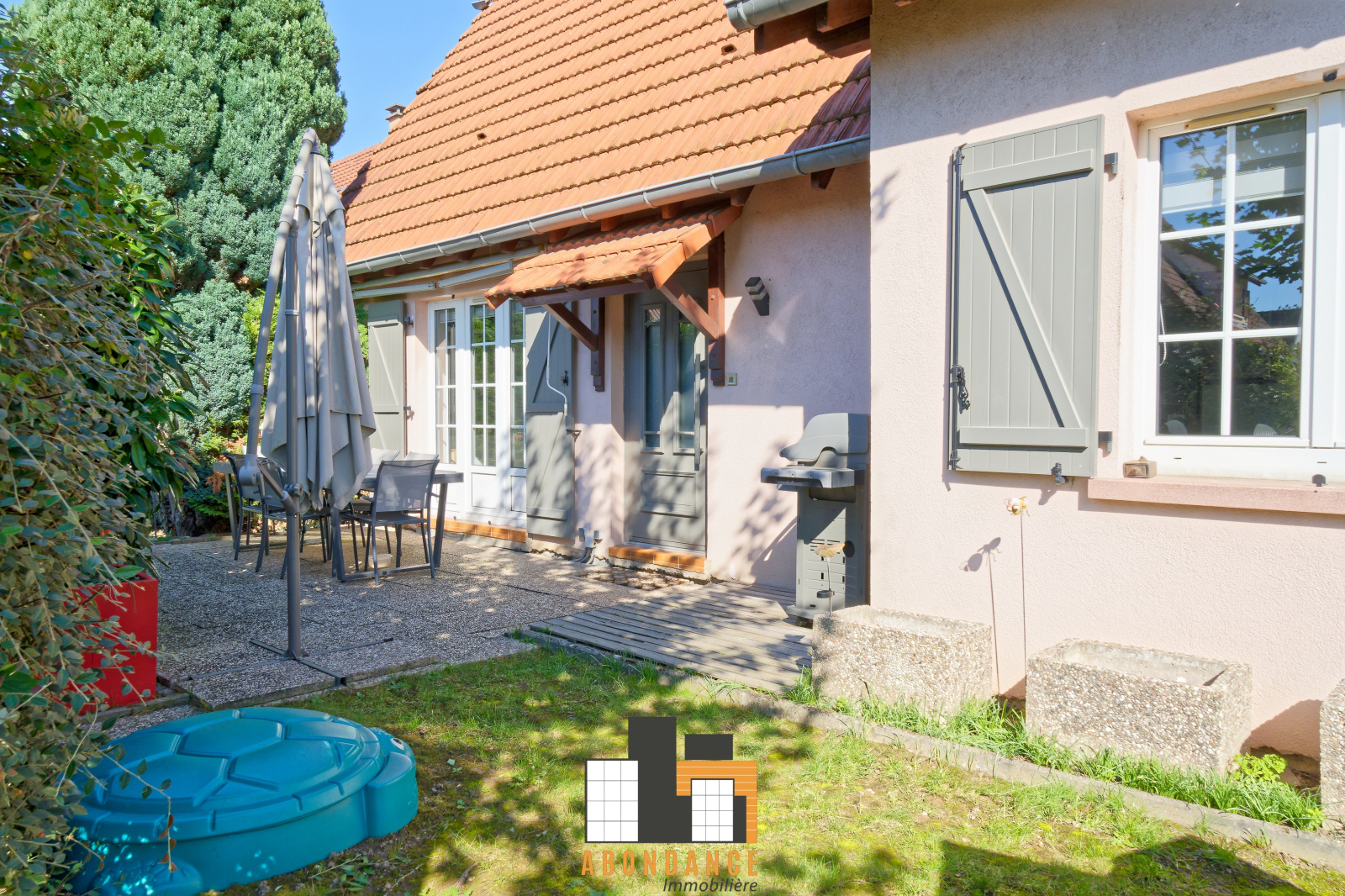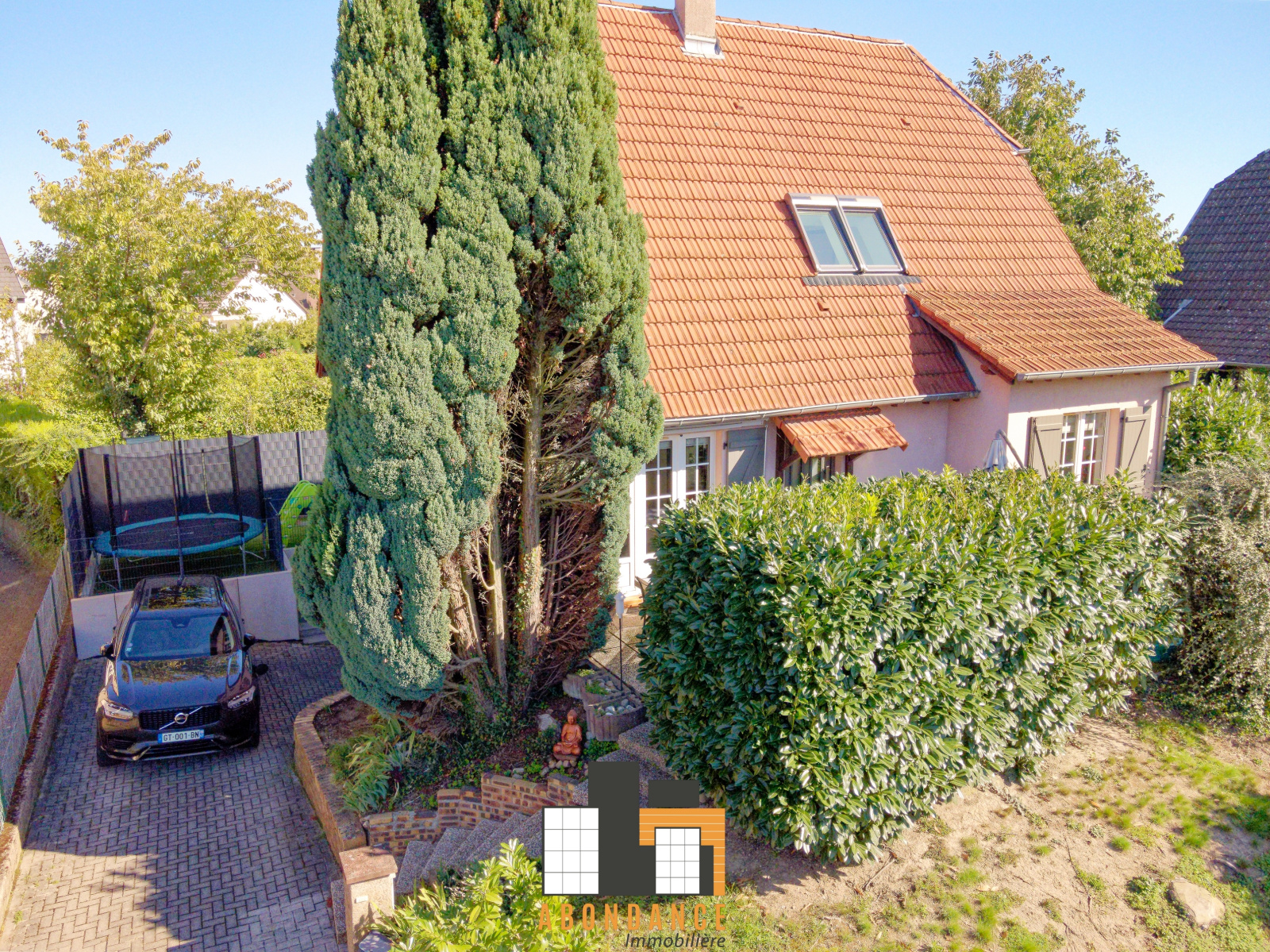 La Wantzenau village quartier extrëmement calme en impasse, maison rénovée d'une surface totale de 143m2, décomposé comme suit: 110m2 habitable 128m2 sol + 15m2 de pièce cinéma carrelée et chauffée sur terrain de 4.29a optimisé (piscine, espace jeux, terrasse)