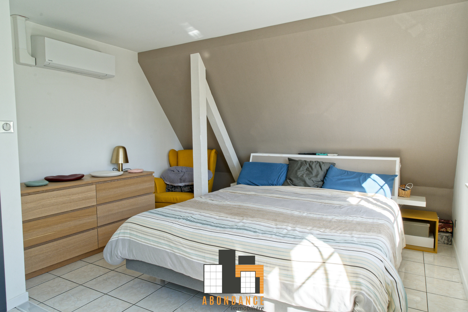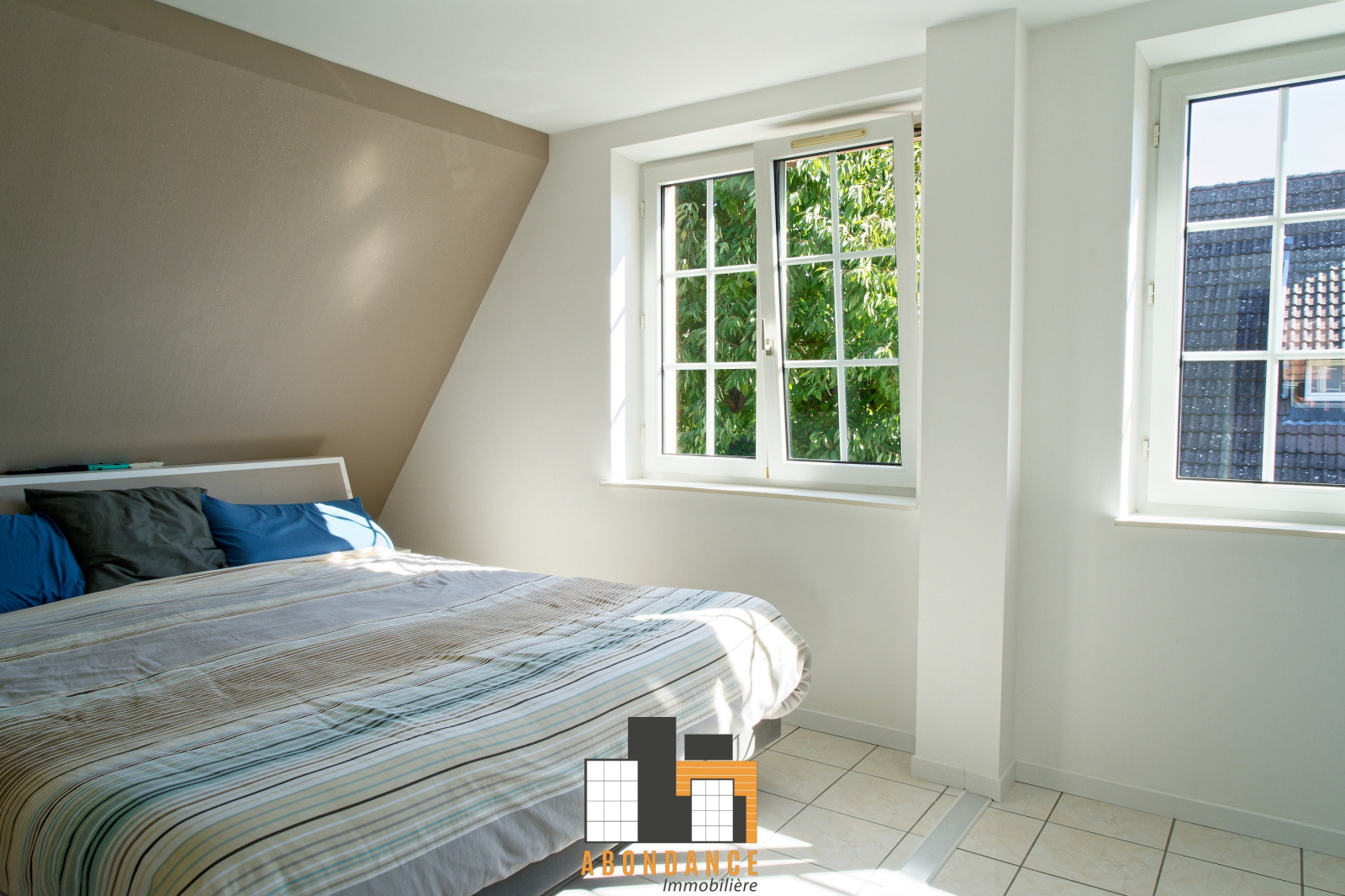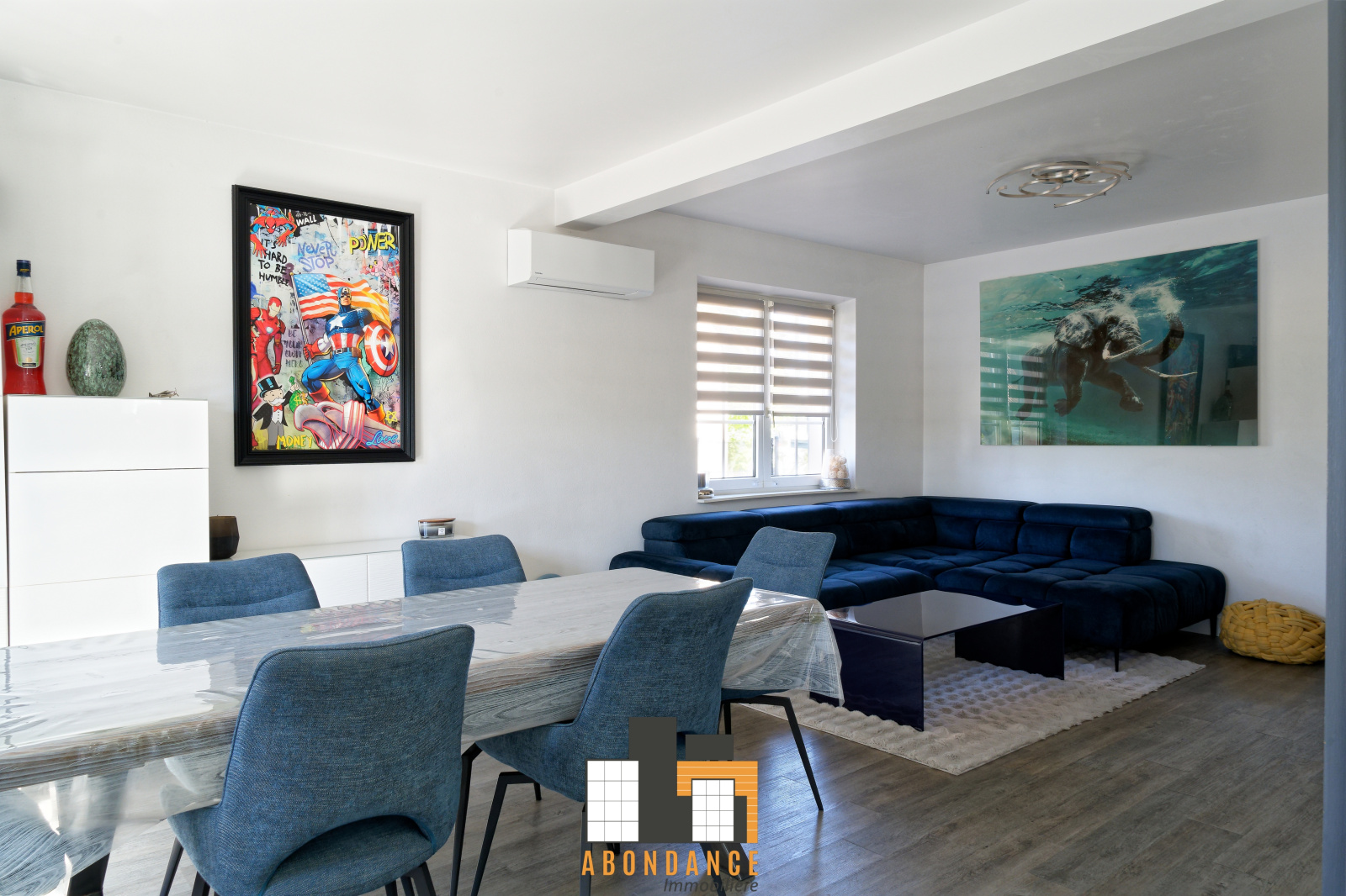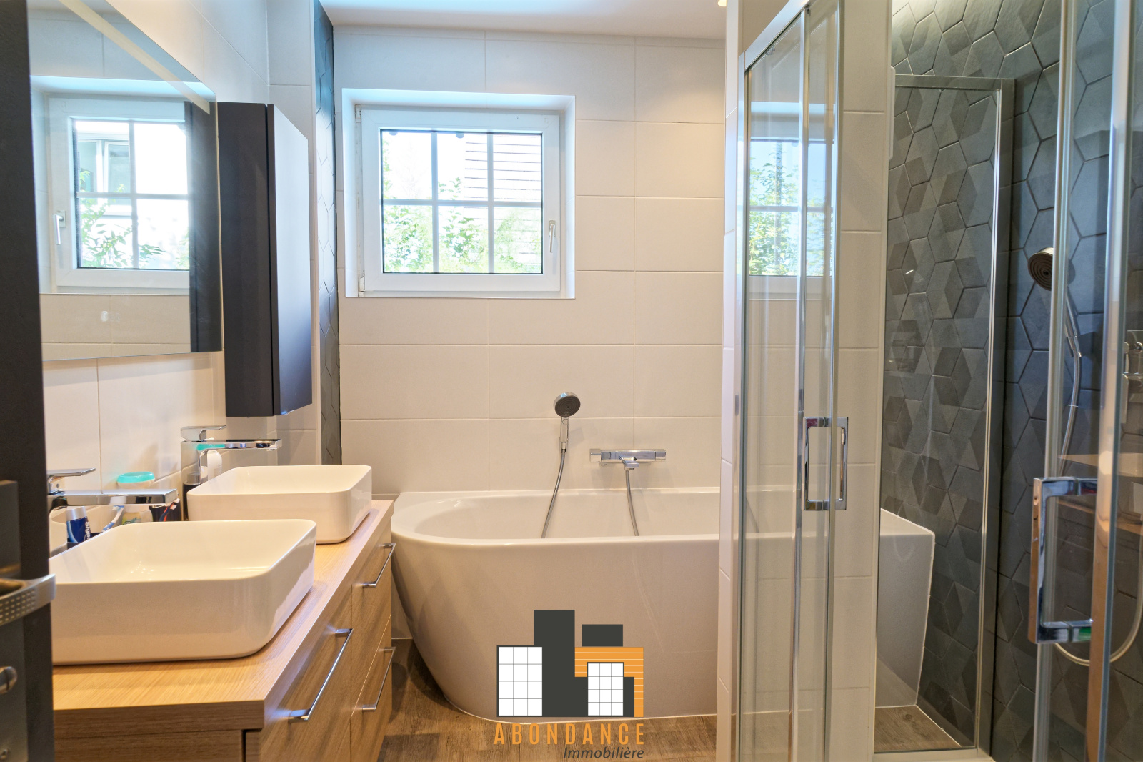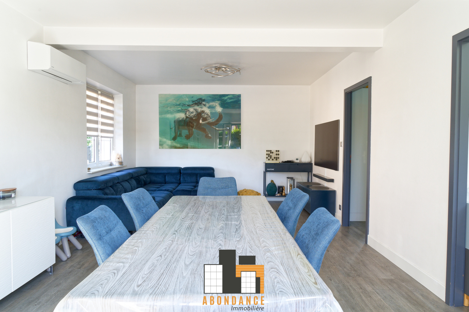 La Wantzenau village quartier extrëmement calme en impasse, maison rénovée d'une surface totale de 143m2, décomposé comme suit: 110m2 habitable 128m2 sol + 15m2 de pièce cinéma carrelée et chauffée sur terrain de 4.29a optimisé (piscine, espace jeux, terrasse)