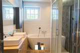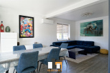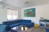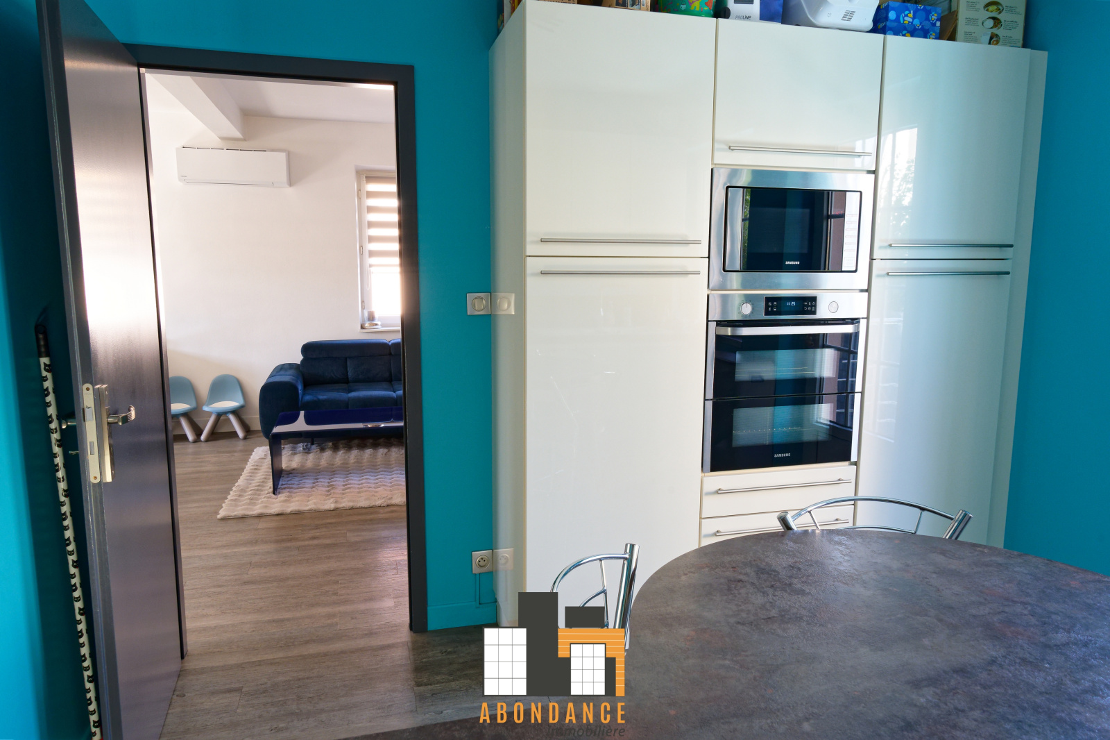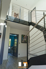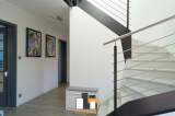 RDC: grande entrée avec mezzanine, salon séjour de 27m2 + cuisine équipée Schmitt, 1 bureau ou chambre de 10.3m2, 1 salle de bains (baignoire + double douche) 1wc séparé.