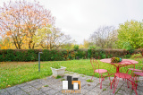 RDC: vaste entrée avec vide et coursive de distribution, 1 bureau, 1 salon séjour de 44m2 avec cheminée donnant sur le jardin et la terrasse sud/Ouest, 1 cuisine séparée (possibilité US), 1 chambre avec sa salle d'eau (douche vasque) 1 wc.
