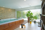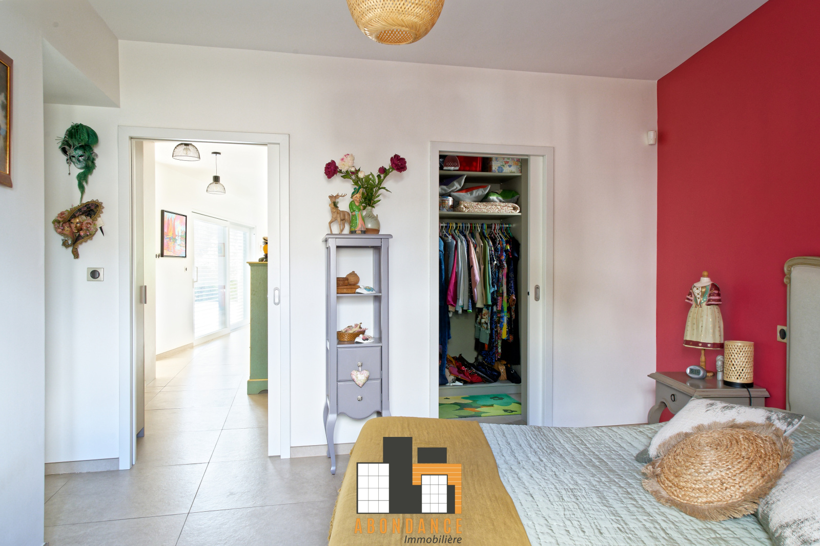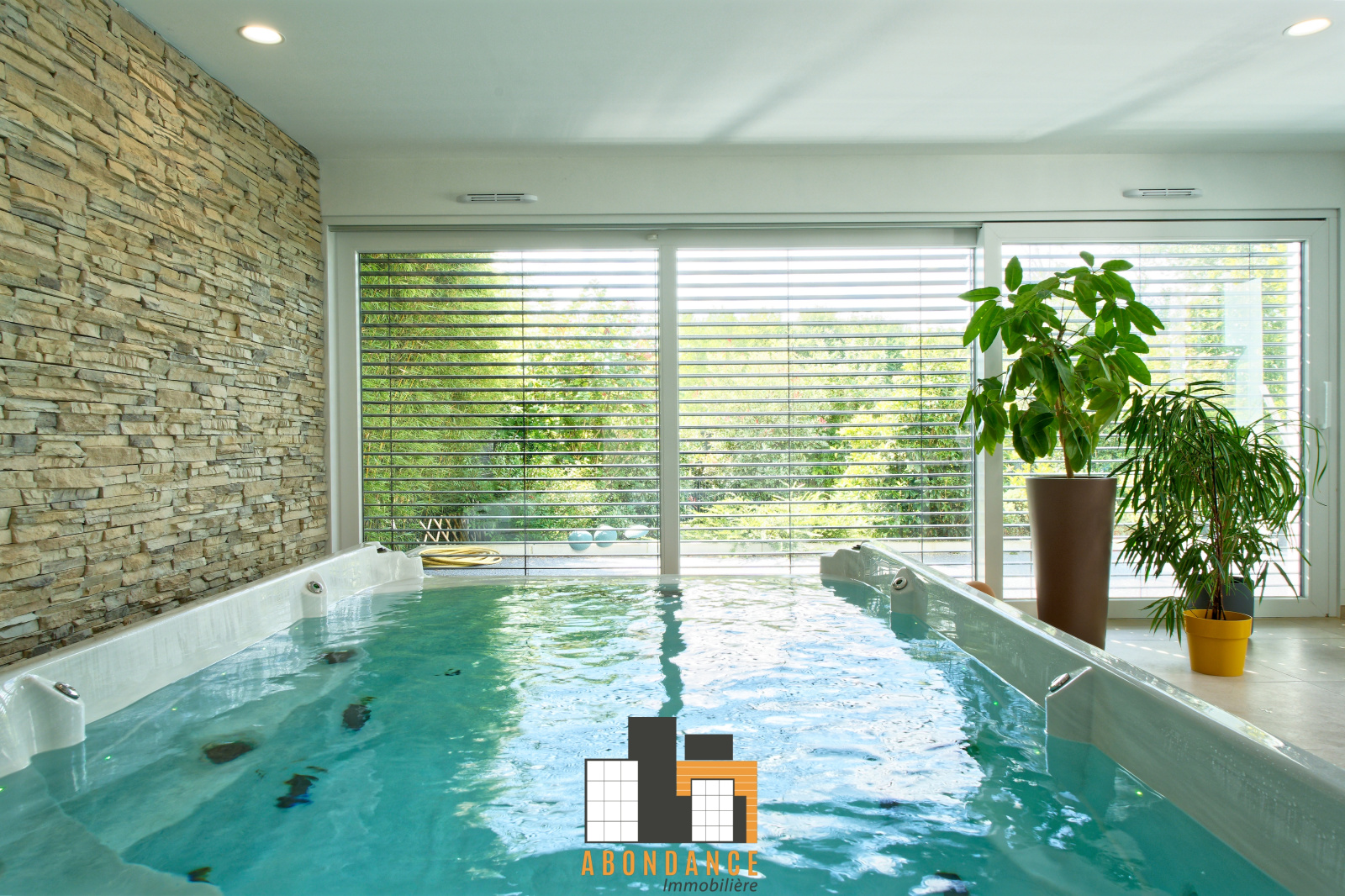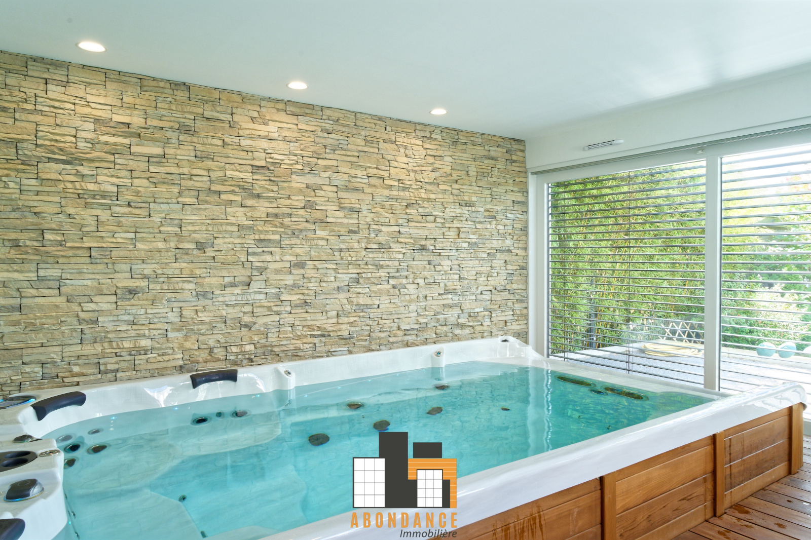 RDC: entrée avec placard sur mesure, pièce de vie de 49m2 avec cuisine équipée ouverte + cellier. 1 suite parentale (chambre, dressing, salle de bains avec douche et baignoire) wc séparés. 1 grande pièce de 24m2 avec spa de nage + salle de sport.