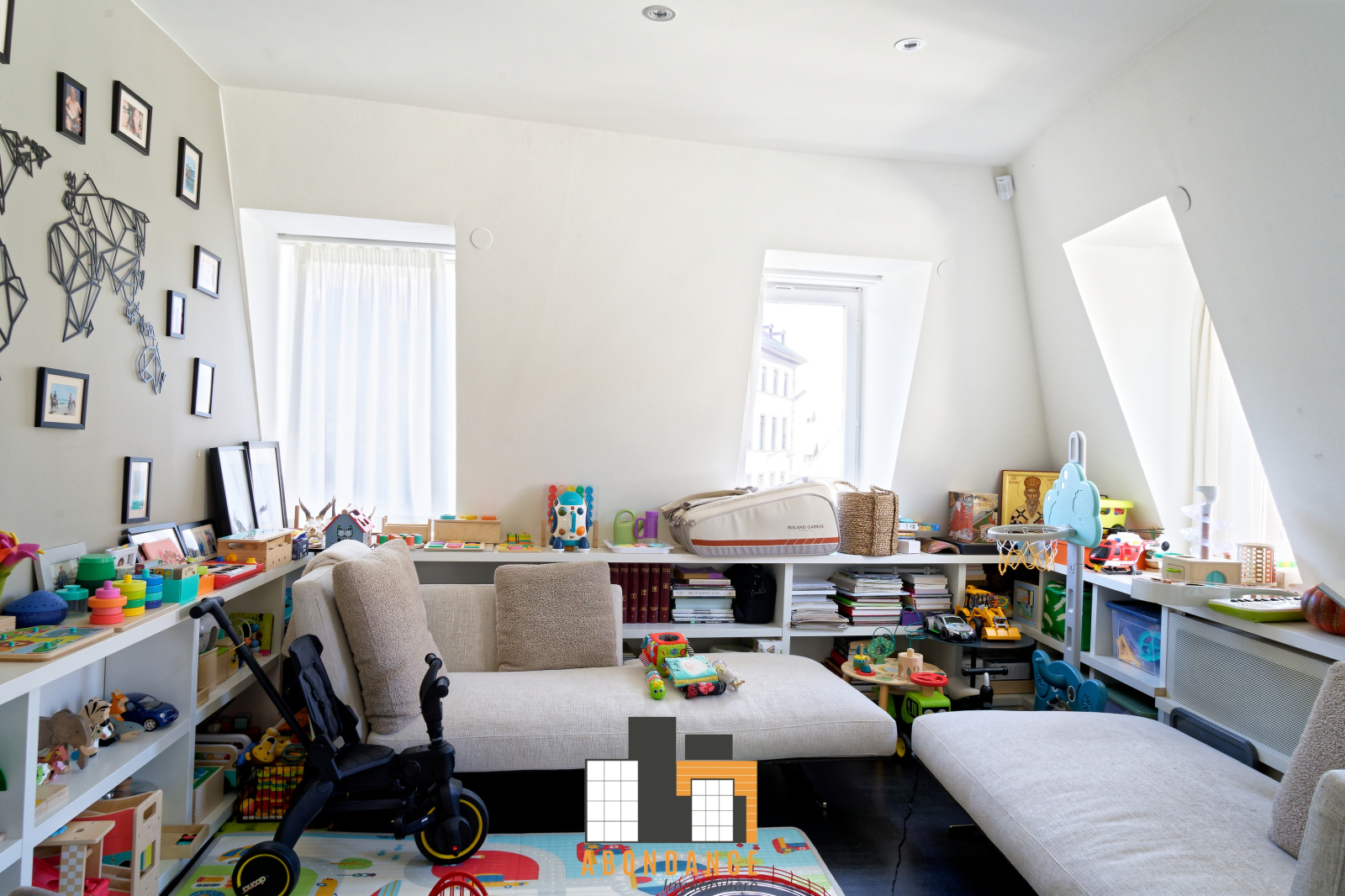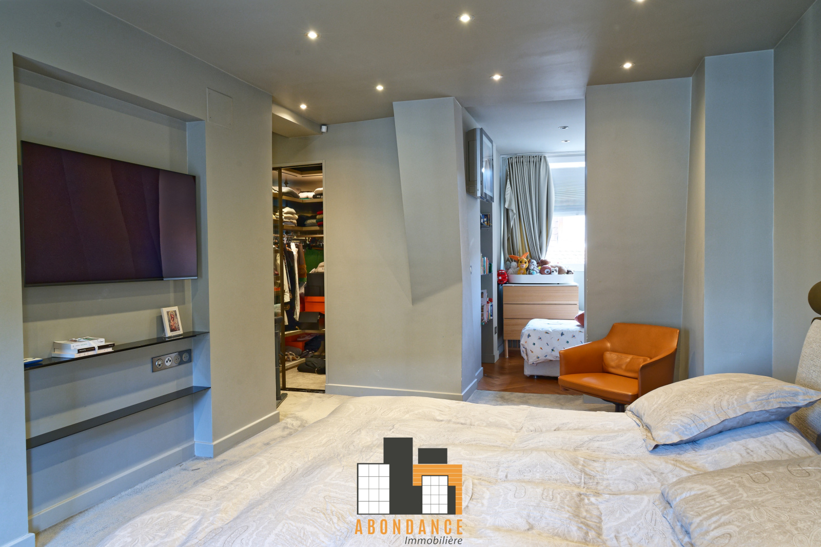 Deuxième niveau: 1 grande salle de jeux, bureau ou potentielle chambre de 16.44m2, 1 wc, 1 buanderie, 1 suite parentale avec chambre de 24m2 avec espace bureau + 2 dressings + 1 salle de douche et wc