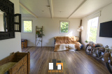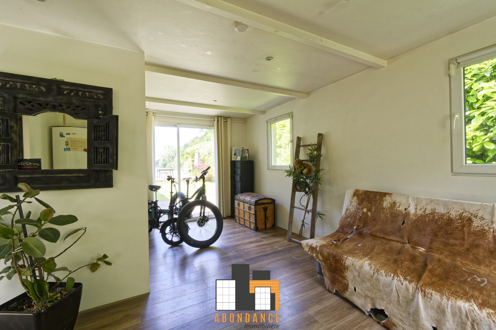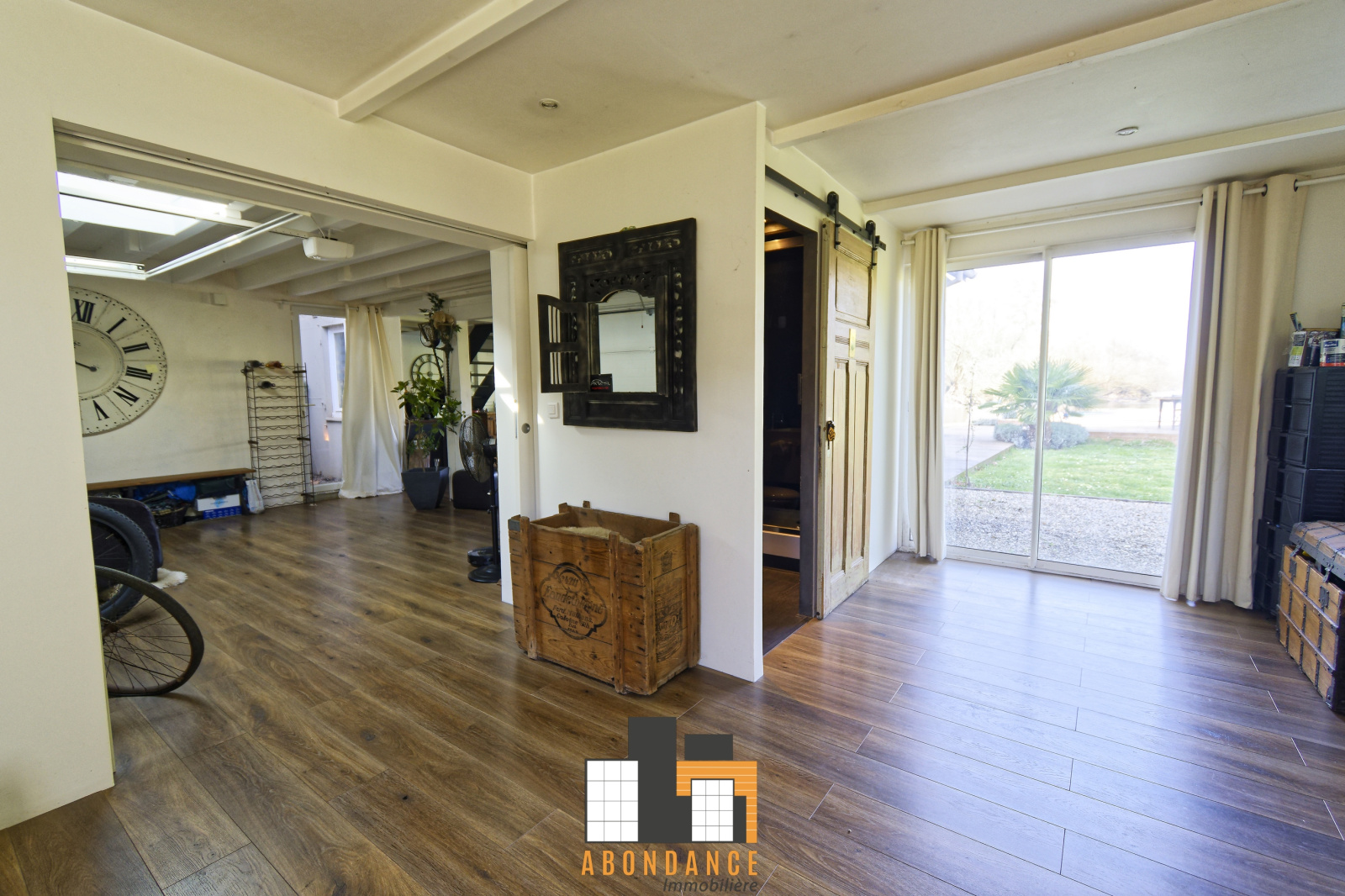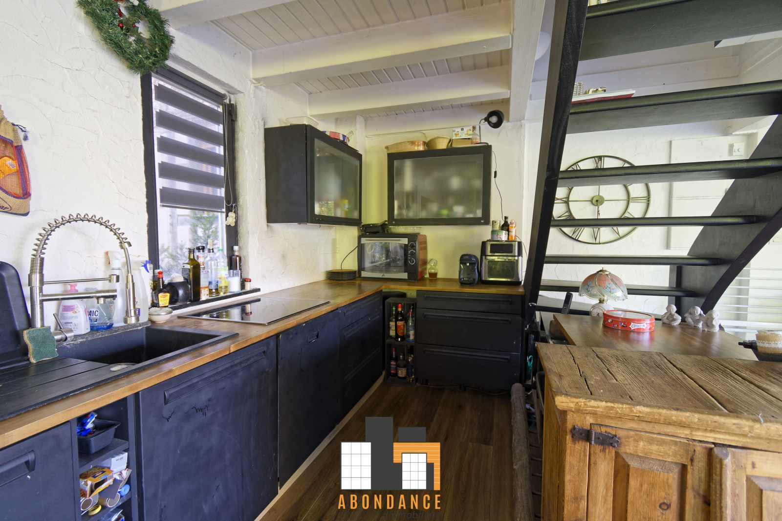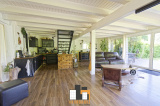 RDC: open space regroupant le salon séjour + cuisine ouverte de 50m2 environ avec la possibilité d'avoir une vue traversante d'un bout à l'autre de la maison (ou pour les passionnés de belles mécaniques d'exposer un véhicule dans un coin du salon). 1 chambre d'ami avec salle d'eau.