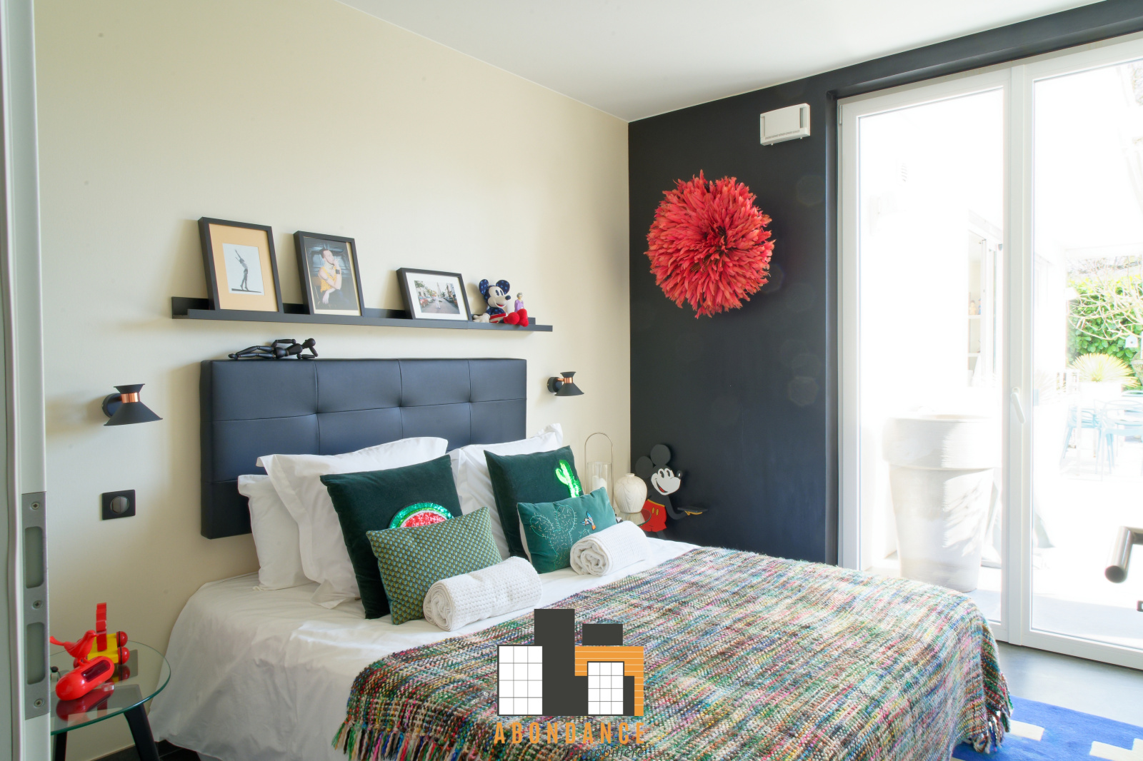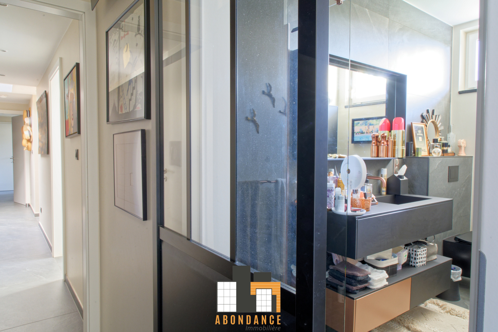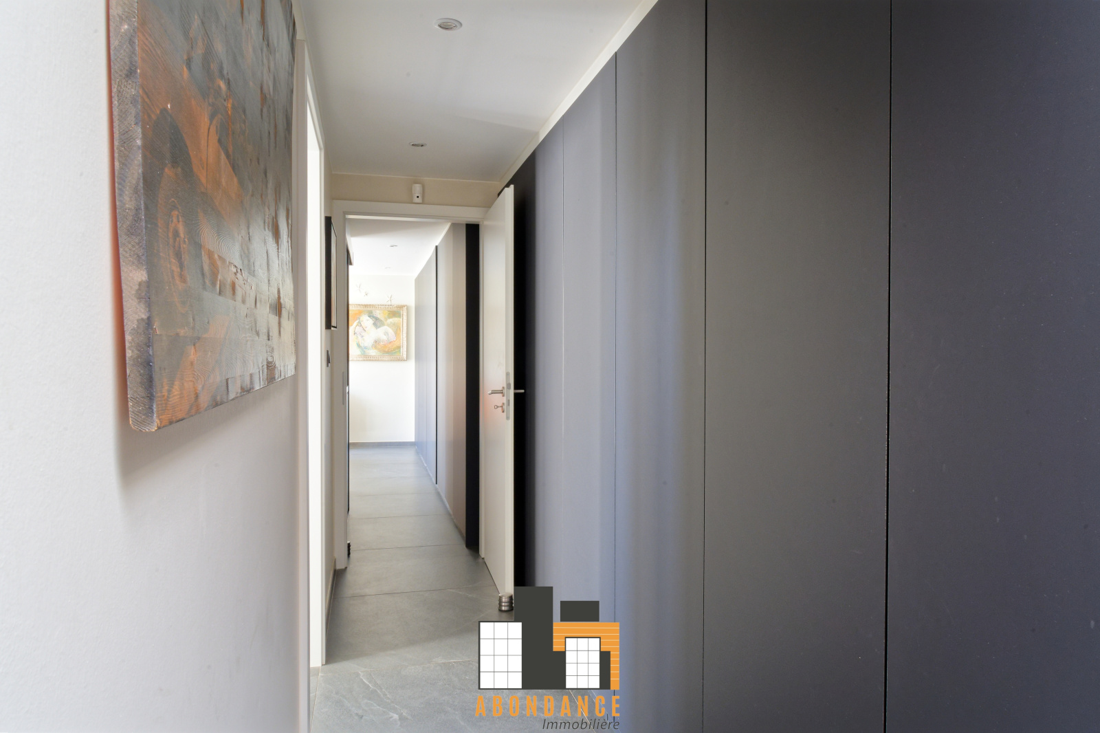 couloir entièrement meublé en dressing distribuant deux chambres chacune avec leur salles d'eau privatives (douche + wc) avec sortie sur la terrasse.